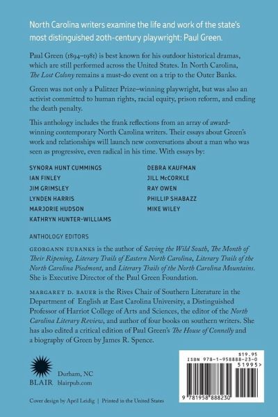 "Paul Green (1894-1981) is best known for his outdoor historical dramas, which are still performed across the United States. In North Carolina, The Lost Colony remains a must-do event on a trip to the Outer Banks. Green was not only a Pulitzer Prize-winning playwright, but was also an activist committed to human rights, racial equity, prison reform, and ending the death penalty. This anthology includes the frank reflections from an array of award-winning contemporary North Carolina writers. Their essays about Green's work and relationships will launch new conversations about a man who was seen as progressive, even radical in his time" --