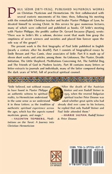 Paul Sédir, pseudonym of Yvon Le Loup (1871-1926), published numerous works on Christian Mysticism and Hermeticism. He first collaborated with several esoteric movements of his time; then, following his meeting with the remarkable Christian teacher and healer Master Philippe of Lyon, he devoted himself to serving Christ. In this service he gave numerous lectures, many of which were collected and published as books. Of Sédir's meeting with Master Philippe, the prolific author Dr. Gerard Encausse (Papus), wrote: "There was in Sédir's life a solemn, decisive event that made him grasp the emptiness of secret sciences and societies and placed him forever upon the sole way of the gospel." The present work is the first biography of Paul Sédir published in English (nearly a century after his death!). Part I consists of biographical essays by Émile Besson and Max Camis, close associates of Sédir. Part II is made up of eleven short works and articles, among them: An Unknown, The Master, Druidic Initiation, The Little Shepherd, Meditations Concerning Art, The Faithful Dog, and The Friends of God in Modern Society. Part III contains many letters or letter-extracts to journals and individuals, many of the latter composed during the dark years of WWI, full of practical spiritual counsel. "Sédir believed, not without reason, to have found in Master Philippe an authentic witness to spiritual reality, to Hermeticism understood in the same sense as we understand it in these Letters: as the tradition of authentic spiritual experience across the ages, which has the aspects named mysticism, gnosis, and magic."-Valentin Tomberg, Meditations on the Tarot: A Journey into Christian Hermeticism "After the death of the Austrian thinker and seer Rudolf Steiner in 1925, when the revered Bulgarian spiritual teacher Peter Deunov was asked whether great spirits who had already died ever came to his lectures, he replied that only Rudolf Steiner and Paul Sédir attended them."-Harrie Salman, Rudolf Steiner & Peter Deunov