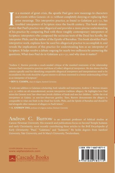 In a moment of great crisis, the apostle Paul gave new meanings to characters and events within Genesis 16-21 without completely denying or replacing their prior meanings. This interpretive practice, as found in Galatians 4:21-31, has troubled interpreters of Scripture since the fourth century. This book demonstrates that Paul's practice was allegorical and provides a more precise understanding of his practice by comparing Paul with three roughly contemporary interpreters of Scripture: interpreters who composed the sectarian texts of the Dead Sea Scrolls, the interpreter Philo, and the author of the Epistle of Barnabas. This book identifies Paul's interpretive work, explains how he used his allegorical practice to accomplish it, and reveals the implications of this practice for understanding him as an interpreter of Scripture. It helps resolve a debate ongoing for nearly two millennia by answering the questions, What does Paul do in Galatians 4:21-31, and why does it matter?