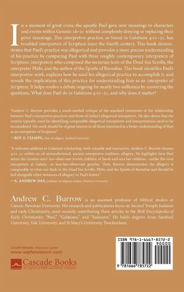 In a moment of great crisis, the apostle Paul gave new meanings to characters and events within Genesis 16-21 without completely denying or replacing their prior meanings. This interpretive practice, as found in Galatians 4:21-31, has troubled interpreters of Scripture since the fourth century. This book demonstrates that Paul's practice was allegorical and provides a more precise understanding of his practice by comparing Paul with three roughly contemporary interpreters of Scripture: interpreters who composed the sectarian texts of the Dead Sea Scrolls, the interpreter Philo, and the author of the Epistle of Barnabas. This book identifies Paul's interpretive work, explains how he used his allegorical practice to accomplish it, and reveals the implications of this practice for understanding him as an interpreter of Scripture. It helps resolve a debate ongoing for nearly two millennia by answering the questions, What does Paul do in Galatians 4:21-31, and why does it matter?