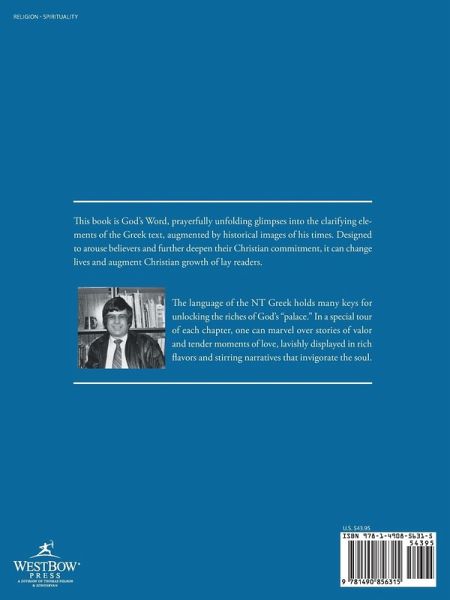 This book is God?s Word, prayerfully unfolding glimpses into the clarifying elements of the Greek text, augmented by historical images of his times. Designed to arouse believers and further deepen their Christian commitment, it can change lives and augment Christian growth of lay readers. The language of the NT Greek holds many keys for unlocking the riches of God?s ?palace.? In a special tour of each chapter, one can marvel over stories of valor and tender moments of love, lavishly displayed in rich flavors and stirring narratives that invigorate the soul.