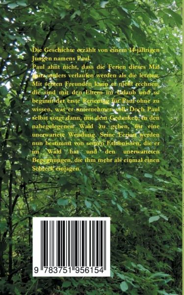 Die Geschichte erzählt von einem 14-jährigen Jungen namens Paul. Paul ahnt nicht, dass die Ferien dieses Mal ganz anders verlaufen werden als die letzten. Mit seinen Freunden kann er nicht rechnen, die sind mit den Eltern im Urlaub und so beginnt der erste Ferientag für Paul ohne zu wissen, was er unternehmen soll. Doch Paul selbst sorgt dann, mit dem Gedanken, in den nahegelegenen Wald zu gehen, für eine unerwartete Wendung. Seine Ferien werden nun bestimmt von seinen Erlebnissen, die er im Wald hat und den unerwarteten Begegnungen, die ihm mehr als einmal einen Schreck einjagen.