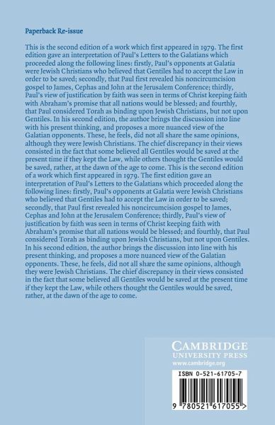 This is the second edition of a work which first appeared in 1979. The first edition gave an interpretation of Paul's Letters to the Galatians which proceeded along the following lines: firstly, Paul's opponents at Galatia were Jewish Christians who believed that Gentiles had to accept the Law in order to be saved; secondly, that Paul first revealed his noncircumcision gospel to James, Cephas and John at the Jerusalem Conference; thirdly, Paul's view of justification by faith was seen in terms of Christ keeping faith with Abraham's promise that all nations would be blessed; and fourthly, that Paul considered Torah as binding upon Jewish Christians, but not upon Gentiles. In his second edition, the author brings the discussion into line with his present thinking, and proposes a more nuanced view of the Galatian opponents. These, he feels, did not all share the same opinions, although they were Jewish Christians. The chief discrepancy in their views consisted in the fact that some believed all Gentiles would be saved at the present time if they kept the Law, while others thought the Gentiles would be saved, rather, at the dawn of the age to come.