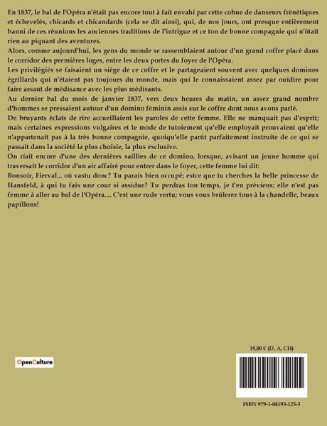 Texte à corriger : "Paula Monti ou l'Hôtel Lambert" est un roman d'Eugène Sue, publié en 1845, qui plonge le lecteur dans les méandres de la haute société parisienne du XIXe siècle. L'histoire s'articule autour de Paula Monti, une femme énigmatique dont la vie est marquée par des intrigues complexes et des relations tumultueuses. Le récit débute lors d'un bal à l'Opéra, un événement mondain où se croisent les destins de nombreux personnages. Paula Monti, au centre de cette toile sociale, navigue entre les attentes de son milieu et ses propres désirs. Le roman est divisé en trois parties, chacune explorant différents aspects de la vie de Paula et des personnes qui l'entourent. La première partie introduit les personnages principaux et leurs relations, avec M. et Mme de Brévannes, ainsi que le mystérieux prince de Hansfeld. Les chapitres se succèdent en dévoilant les secrets et les évolutions cachées de chacun, tout en mettant en lumière les conventions sociales de l'époque. La deuxième partie approfondit les intrigues, avec des révélations et des confrontations qui mettent à l'épreuve les liens entre les personnages. Les thèmes de la trahison, de l'amour et de la rédemption sont omniprésents, et le lecteur est entraîné dans un tourbillon d'émotions et de rebondissements. La troisième partie conduit à une résolution dramatique, où les choix des personnages ont des conséquences irréversibles. Les tensions culminent dans des scènes de confrontation et de révélation, autour du château de Brévannes et du chalet, lieux clés des enjeux du récit. Eugène Sue, à travers une écriture fluide et détaillée, offre une critique sociale acerbe tout en captivant le lecteur par une intrigue palpitante.
