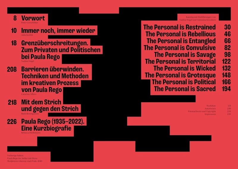 Schonungslos hat Paula Rego Zeit ihres Schaffens mit ihrer Kunst gesellschaftliche Missstände offengelegt. Die gebürtige Portugiesin, die London zu ihrer Wahlheimat erklärte, zählt deshalb zu den bedeutendsten Maler:innen unserer Gegenwart. Ihre Bilder sind aktueller denn je. Sie widmen sich hochemotionalen Themen wie politischer und sexualisierter Gewalt, körperlicher Selbstbestimmung oder psychischer Gesundheit, immer mit Blick auf die Rechte von Frauen. Anhand von mehr als 120 Werken aus sieben Dekaden geht das Museum Folkwang dem Spannungsfeld zwischen dem vermeintlich Privaten und dem Politischen in Regos uvre nach, angefangen von Regos Gemälden der 1950er-Jahre, die Kritik an der damaligen Diktatur in ihrem Heimatland üben, bis hin zu ihrer berühmten Abortion-Serie, dem persönlichem Beitrag der Künstlerin zum Diskurs um die Legalisierung von Schwangerschaftsabbrüchen. Ausstellung und Begleitband möchten zeigen, dass die Fragen, die Paula Rego gestellt hat, ihre Dringlichkeit nicht verloren haben. Die Widerständigkeit ihrer Kunst wird dabei zum Gestaltungsprinzip erhoben.Die portugiesisch-britische Künstlerin Paula Rego (1935 Lissabon-2022 London) gehört zu den wichtigsten Maler_innen der Figuration der letzten Jahrzehnte.