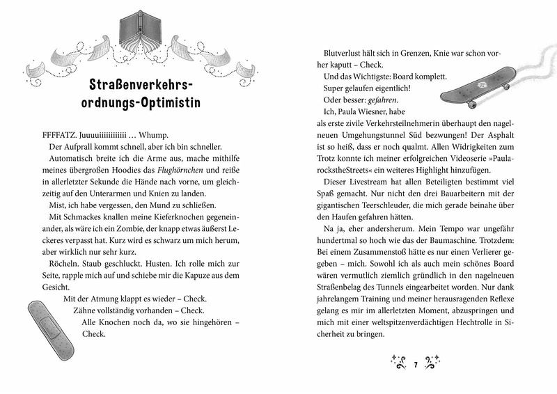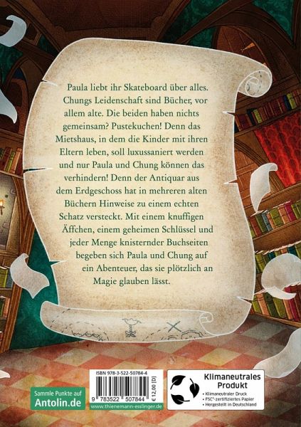 Das Mietshaus, in dem Paula mit ihren Eltern lebt, soll verkauft werden. Aber Paula will unter keinen Umständen umziehen, denn ihr geliebter Skate-Park liegt direkt um die Ecke. Als der Besitzer des Antiquariats im Erdgeschoss sie auf eine in alten Büchern versteckte Schatzkarte hinweist, weiß sie, dass das die Lösung aller ihrer Probleme ist. Doch um den Schatz zu finden, muss sie sich mit dem bücherliebenden Chung, der ebenfalls im Haus wohnt, verbünden. Ihre Suche führt sie in eine unheimliche Bibliothek, befüllt mit rätselhaften Büchern, in ein mysteriöses Landschloss, gespickt mit Geheimnissen, und in ein nächtliches Museum voller Wunder. Ein magisches Abenteuer beginnt für die beiden, in dessen Schatten mehr als einmal Gefahren lauern ...
