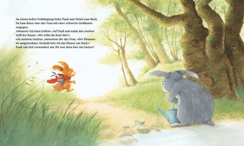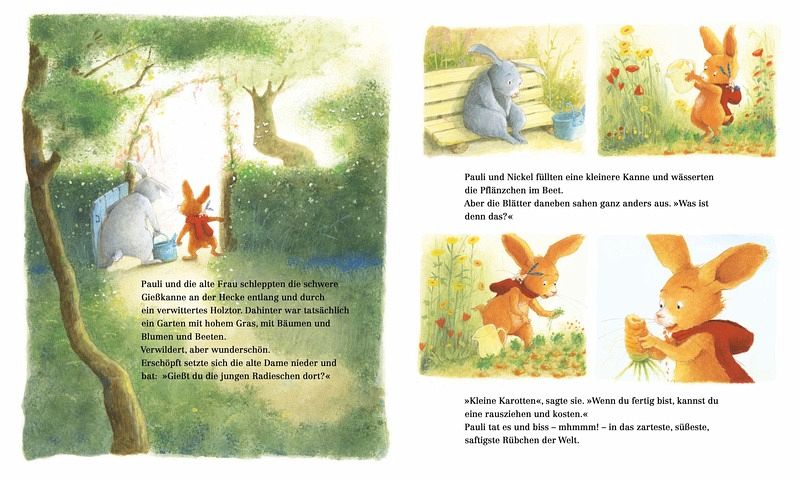 An einem hellen Frühlingstag treffen der Hasenjunge Pauli und sein Freund Nickel auf die alte Hasendame Elise. Sie besitzt einen wunderschönen Gemüsegarten, der allerdings verwildert ist, da sie ihn nicht mehr pflegen kann. Und auch der Brunnen auf dem Grundstück