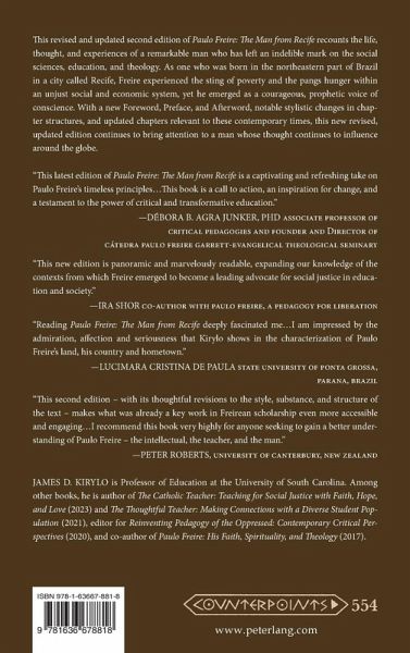 This latest edition of Paulo Freire: The Man from Recife is a captivating and refreshing take on Paulo Freire's timeless principles...Kirylo skillfully incorporates issues like neoliberalism, destructive tribalism, and religious sectarian nationalism in dialogue with Freire's transformative ideas, underscoring the continued relevance of Freire's thought in addressing today's challenges. This book is much more than a simple compendium of historical and bibliographical information; it is a call to action, an inspiration for change, and a testament to the power of critical and transformative education.