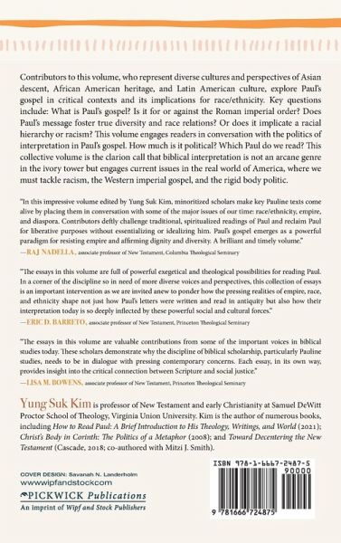 "Contributors to this volume, who represent diverse cultures and perspectives of Asian descent, African American heritage, and Latin American culture, explore Paul's gospel in critical contexts and its implications for race/ethnicity. Key questions include: What is Paul's gospel? Is it for or against the Roman imperial order? Does Paul's message foster true diversity and race relations? Or does it implicate a racial hierarchy or racism? This volume engages readers in conversation with the politics of interpretation in Paul's gospel. How much is it political? Which Paul do we read? This collective volume is the clarion call that biblical interpretation is not an arcane genre in the ivory tower but engages current issues in the real world of America, where we must tackle racism, the Western imperial gospel, and the rigid body politic." --