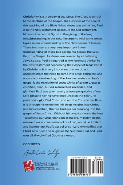 Christianity is a theology of the Cross. The Cross is central to the doctrine of the Gospel. The Gospel is at the core of the teaching of the Bible. What Moses was to the law, Paul is to the New Testament gospel. In the Old Testament, Moses is the central figure in the giving of the law; notwithstanding, in the New Testament, Paul is the central figure in our understanding of the New Covenant Gospel. These two men are very, very important in our understanding of these two covenants. Moses, the Law; Paul, the Gospel. As Moses was revered by all believing Jews, so also, Paul is regarded as the foremost thinker in the New Testament concerning the Gospel of Jesus Christ by Christians. It is very important that we do not underestimate the need to come into a full, complete, and accurate understanding of the Pauline revelation. Paul's gospel is the revelation of Jesus Christ after the Cross: as crucified, dead, buried, resurrected, ascended, and glorified. Paul was given a very unique perspective of our Lord [despite having never met Christ in the flesh). He preached a glorified Christ, and not the Christ in the flesh. It is through his revelation [his deep insights into Christ, and him crucified] that we find deeper meaning into the gospel of Jesus Christ. Without his contribution to the New Testament, our understanding of the life, ministry, death, resurrection, and ascension of our Lord, would be limited and incomplete. Paul's gospel of our Lord exemplifies that Christ now rules and reigns as the Supreme God and Lord over all: the glorified God-man. Amen.