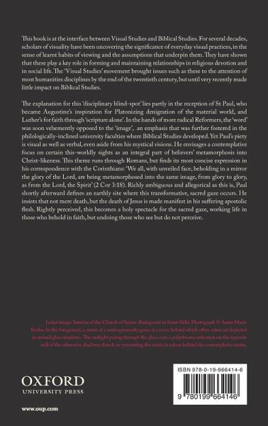 This book is at the interface between Visual Studies and Biblical Studies. For several decades, scholars of visuality have been uncovering the significance of everyday visual practices, in the sense of learnt habits of viewing and the assumptions that underpin them. They have shown that these play a key role in forming and maintaining relationships in religious devotion and in social life. The "Visual Studies" movement brought issues such as these to the attention of most humanities disciplines by the end of the twentieth century, but until very recently made little impact on Biblical Studies. The explanation for this "disciplinary blind-spot" lies partly in the reception of St Paul, who became Augustine's inspiration for platonising denigration of the material world, and Luther's for faith through "scripture alone." In the hands of more radical Reformers, the Word was soon vehemently opposed to the Image, an emphasis that was further fostered in the philologically-inclined university faculties where Biblical Studies developed.