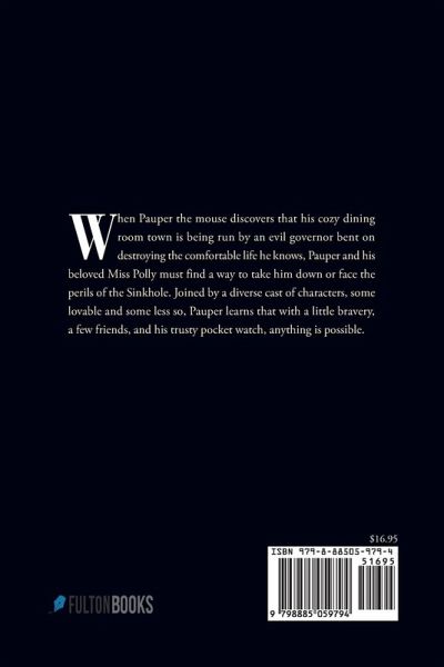 When Pauper the mouse discovers that his cozy dining room town is being run by an evil governor bent on destroying the comfortable life he knows, Pauper and his beloved Miss Polly must find a way to take him down or face the perils of the Sinkhole. Joined by a diverse cast of characters, some lovable and some less so, Pauper learns that with a little bravery, a few friends, and his trusty pocket watch, anything is possible.