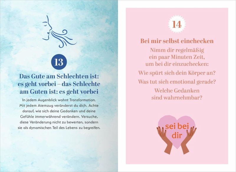 Entspannt statt ausgebrannt: 96 Seiten voller Ideen und Inspiration, verpackt in anregenden WortenAchtsamkeit zum Mitnehmen: Das handliche Buch mit Softcover und Lesebändchen passt in jede Tasche und ist so der ideale Begleiter für tägliche GlücksmomenteInspirierende Inhalte: Die anregenden Texte entfachen Begeisterung für die kleinen Dinge im Leben und schenken wertvolle Ruhe für einen achtsamen AlltagPraktisch und hochwertig: Der dekorative Buch ist übersichtlich gestaltet und überzeugt auch durch die hochwertige Auswahl an Illustrationen sowie FotosLiebevolles Geschenk: Ein wundervolles Mitbringsel für die Liebsten, die sich mehr Balance und eine kleine Auszeit wünschen, aber auch eine schöne Aufmerksamkeit für dich selbst
