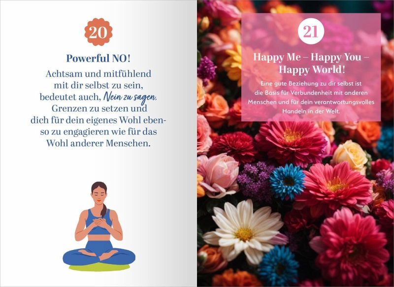 Der Hektik und Alltagsroutine entfliehen: Erlebe kleine Momente der Ruhe, Achtsamkeit und Selbstfürsorge. Dieses zauberhafte Buch enthält 99 inspirierende Ideen und Impulse, die dir helfen, den Alltag stressfreier und achtsamer zu gestalten. Begleitet von wunderschönen Illustrationen und Fotos, bietet es dir täglich neue Wege, deine Gedanken positiv auszurichten und die kleinen Freuden des Lebens zu entdecken.