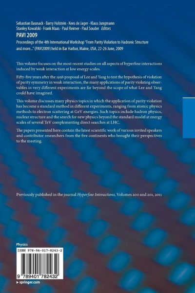 PAVI09 Proceedings of the 4th International Workshop "From Parity Violation to Hadronic Structure and more..." held in Bar Harbor, Maine, USA, 22-26 June 2009 Main topic: Parity Violation in the Electro-Weak Interactions and Other Low-Energy Tests of the Standard Model, including: Overview of the experimental program, Strangeness in the nucleon: experiment and theory, Standard Model tests, Hadronic Parity Violation, Probing two-photon exchange effects, Electro-weak radiative corrections involving hadronic structure, Technical developments, Neutrinos, beta decay and electric dipole moments. Reprinted from Hyperfine Interactions Vol. 200:1-3 and Vol. 201:1-3 .