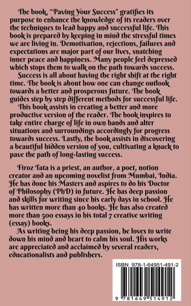 ‘Paving Your Success’ is a book that gratifies its purpose of enhancing the knowledge of its readers over the habits and techniques to lead happy and successful life. This book is prepared by keeping in mind the stressful and demanding times we are living in. Stress, demotivation, rejections, failures and over and above expectations have become dominant part of our lives, taking us away from inner peace and happiness. The book is all about ‘you’ and how you can change your outlook in order to endeavour ahead towards a better and prosperous future. The book successfully guides its readers step by step different methods that will help to lead a successful life. After several hours of brainstorming, the chapters are designed in such a way that their reading, understanding and implementations on self will set readers towards a newer and brighter direction in their lives. This book will assist in enhancing and augmenting the knowledge towards self in creating a better and more productive version of you. Last but not least, the book inspires to take entire charge of our life in our hands and alter situations and surroundings accordingly for desired advancement. The author has tried his level best to use reader-friendly, easy to understand and lucid language throughout the book. This book will not only increase self-confidence, but will also assist in discovering a beautiful hidden version of you, cultivating a knack to pave the path of a long-lasting success.