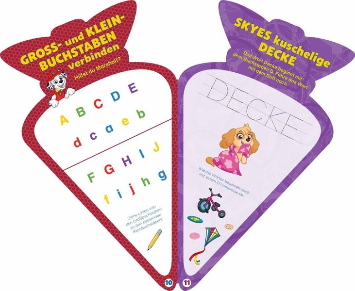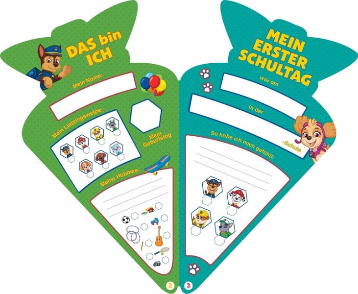 Aber es ist nicht nur viel Platz für Infos zu dir, deinem Schultag und deiner Schule, sondern auch für spannende Rätsel sowie erste Übungen zu Buchstaben und Zahlen. Hilf Zuma die Pfotenabdrücke zu zählen, suche mit Skye alle Wörter, die mit D beginnen, und verbinde mit Marshall Groß- und Kleinbuchstaben miteinander. Die Fellfreunde begleiten dich durch diese Rätsel-Abenteuer!