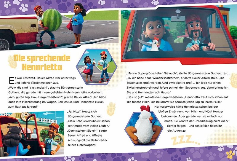 Ob es lila Traubensaft vom Himmel regnet oder ein Stunt mit Boomers Monstertruck schiefgeht - Ryder und seine Fellfreunde sind immer zur Stelle, wenn jemand in Not gerät oder Hilfe braucht. Und auch für Huhn Hennrietta wird es richtig aufregend:Sie wird das allererste Rettungshuhn der PAW Patrol. Drei spannende Rettungsaktionen mit Ryder und den Rettungshunden von der PAW Patrol!