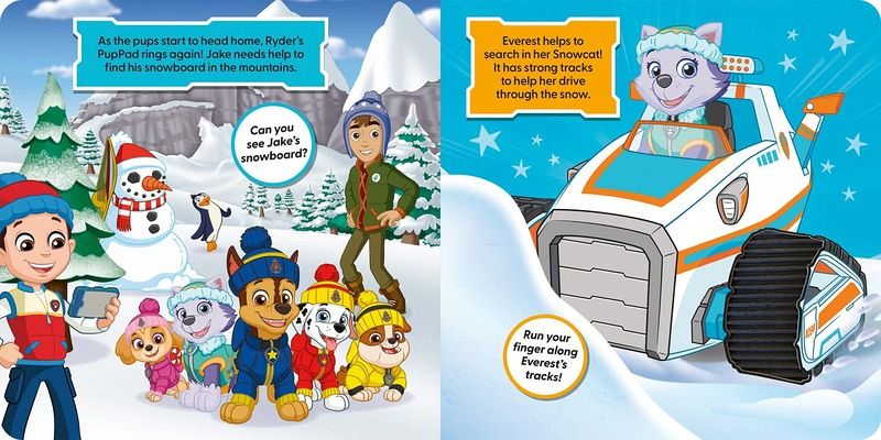 Join the pups on their busy day as they help to rescue their friends in this fun touch and feel book! The PAW Patrol pups are busy helping everyone! From Farmer Yumi's farm to Jake's Snowboarding Resort, follow the pups as they help out all their friends across Adventure Bay. Young children will love exploring all of different textures, including sticky mud and a fluffy blanket, in this interactive sensory board book! Brightly illustrated, with a simple story and something new to touch on each page, this book is perfect for young fans of PAW Patrol. Check out more PAW Patrol titles! * PAW Patrol Pocket Library * PAW Patrol Pop-Up Pups Board Book * PAW Patrol Playtime Pups: A Carry-Along Board Book * PAW Patrol Pups' Easter Basket: A Carry-Along Board Book * PAW Patrol Rubble's Toolbox: A Carry-Along Board Book * PAW Patrol Search and Rescue Pups: A Lift-the-Flap Book * PAW Patrol Dinosaur Lookout Lift-the-Flap Book * PAW Patrol Ready for Action! Tabbed Board Book * PAW Patrol Magnet Book * PAW Patrol Stories to Treasure Collection * PAW Patrol Big, Busy Word Book * PAW Patrol Jigsaw Book