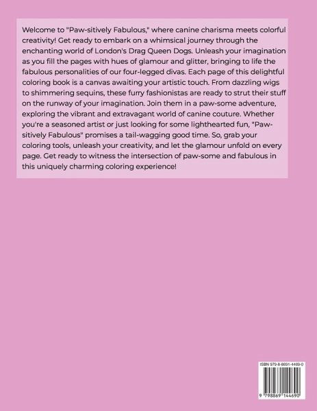 Welcome to "Paw-sitively Fabulous," where canine charisma meets colorful creativity! Get ready to embark on a whimsical journey through the enchanting world of London's Drag Queen Dogs. Unleash your imagination as you fill the pages with hues of glamour and glitter, bringing to life the fabulous personalities of our four-legged divas. Each page of this delightful coloring book is a canvas awaiting your artistic touch. From dazzling wigs to shimmering sequins, these furry fashionistas are ready to strut their stuff on the runway of your imagination. Join them in a paw-some adventure, exploring the vibrant and extravagant world of canine couture. Whether you're a seasoned artist or just looking for some lighthearted fun, "Paw-sitively Fabulous" promises a tail-wagging good time. So, grab your coloring tools, unleash your creativity, and let the glamour unfold on every page. Get ready to witness the intersection of paw-some and fabulous in this uniquely charming coloring experience!