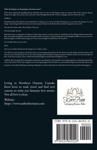 When the bad guys are the good guys, who do you trust? When those tasked with upholding the law should be who you turn to, what happens when you cannot? They are the monsters that go bump in the night. They are the truest evil in this world. I thought that the MC was the real danger, and now I know the truth. Oubliette The Broken Bows MC showed me the depth that I would go too to survive and that the bad guys are not always the bad guys. I've seen things-done things and I'm not that same woman anymore thanks to the Broken Bows and their integration into my life. They showed me their malice. Their darkness. Their evil. Not him though. Not him. Busta showed me a compassion I would never expect from someone so vicious. It has me wondering, am I'm willing to find out more about him? To scramble through the mire of his deception and his viciousness, I may do things that I never thought possible to survive, to love, to find my happily ever after. It may change me in ways I never thought I would for love. Is it worth it? Can I handle what is to come next? Busta One way or another, he'll pay for the damage to us, to them, to her... Our club is in ruins, leaving me at the helm. I know now that King orchestrated it all. Our demise was of his design and I know there is still more to come in this all out war. I'm no one's Pawn though and I won't play by his games anymore. I'll find a way for us to turn the tables on him. To fix what was done. I have to thank the bastard though, his machinations brought her to me. Oubliette. She's strong, fearless, and a gentle soul that does not belong here. She should be concocting margarita's, not dealing with the likes of me. I don't know if I have the strength in me to let her go though, to let her find love in someone deserving. I'm far from that. My lies and deception to the club could bring everything crashing down, and she along with me. I don't know if I can let her go before that happens. Reading order: Rook (Broken Bows MC) King (Broken Bows MC) Pawn (Broken Bows MC) Queen (SoCal Soulless MC) Gambit (Broken Bows MC) Knight (SoCal Soulless MC) Bishop's Play (Broken Bows MC) Death's Deal (Hades Army MC) Loyalty or Royalty (Hades Army MC)
