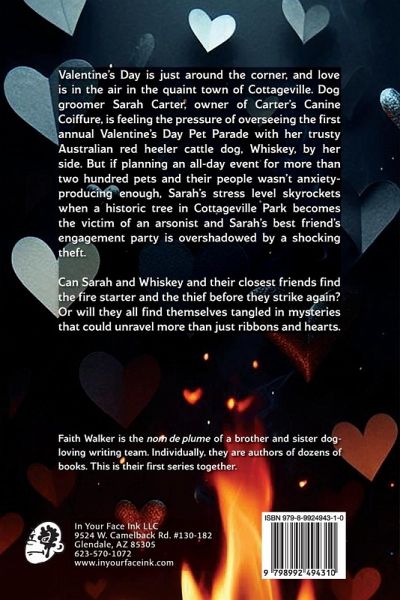 Valentine's Day is just around the corner, and love is in the air in the quaint town of Cottageville. Dog groomer Sarah Carter, owner of Carter's Canine Coiffure, is feeling the pressure of overseeing the first annual Valentine's Day Pet Parade with her trusty Australian red heeler cattle dog, Whiskey, by her side. But if planning an all-day event for more than two hundred pets and their people wasn't anxiety-producing enough, Sarah's stress level skyrockets when a historic tree in Cottageville Park becomes the victim of an arsonist and Sarah's best friend's engagement party is overshadowed by a shocking theft. Can Sarah and Whiskey and their closest friends find the fire starter and the thief before they strike again? Or will they all find themselves tangled in mysteries that could unravel more than just ribbons and hearts. This book is the fourth book in the Whiskey Dog Mystery Series.