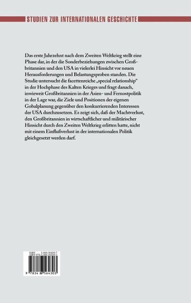 Das erste Jahrzehnt nach dem Zweiten Weltkrieg stellt eine Phase dar, in der die Sonderbeziehungen zwischen Großbritannien und den USA in vielerlei Hinsicht vor neuen Herausforderungen und Belastungsproben standen. Die Studie untersucht die facettenreiche "special relationship" in der Hochphase des Kalten Krieges und fragt danach, inwieweit die USA in der Asien- und Fernostpolitik in der Lage waren, die Ziele und Positionen der eigenen Gobalplanung gegenüber den konkurrierenden britischen Interessen durchzusetzen. Es zeigt sich, daß der Machtverlust, den Großbritannien in wirtschaftlicher und militärischer Hinsicht durch den Zweiten Weltkrieg erlitten hatte, nicht mit einem Einflußverlust in der internationalen Politik gleichgesetzt werden darf.