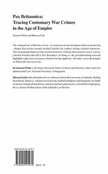 The 'original sin' of the laws of war - its exclusion of non-Europeans from its protection - shapes discussions around criminal liability for conduct during colonial expansion. This monograph disproves this position however, utilising State practice across various colonial frontiers that fell to Pax Britannica. In doing so, the groundbreaking research highlights eight clear customary colonial wars that applied to 'the other' across the Empire on Which the Sun Never Set.