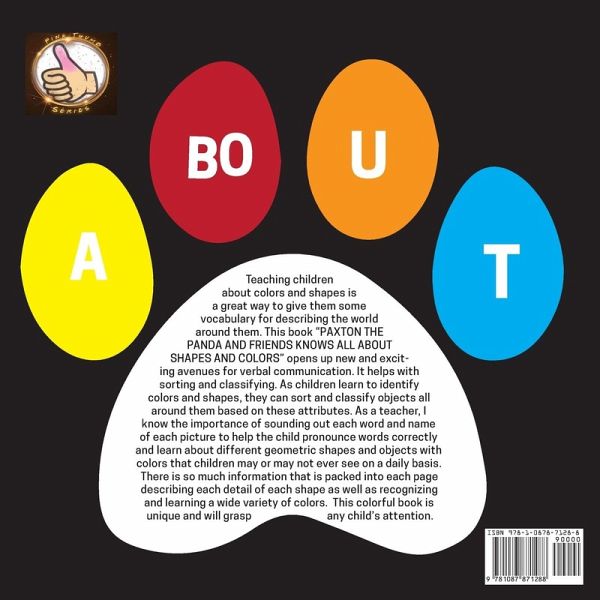Teaching children about colors and shapes is a great way to give them some vocabulary for describing the world around them. This book "PAXTON THE PANDA AND FRIENDS KNOWS ALL ABOUT SHAPES AND COLORS" opens up new and exciting avenues for verbal communication. It helps with Sorting and classi- fying. As children learn to identify colors and shapes, they can sort and classify objects all around them based on these attributes. As a teacher, I know the importance of sounding out each word and name of each picture to help the child pronounce words correctly and learn about different geometric shapes and objects with colors that children may or may not ever see on a daily basis. There is so much information that is packed into each page describing each detail of each shape as well as recognizing and learning a wide variety of colors. This colorful bookis unique and will grasp any childs attention.