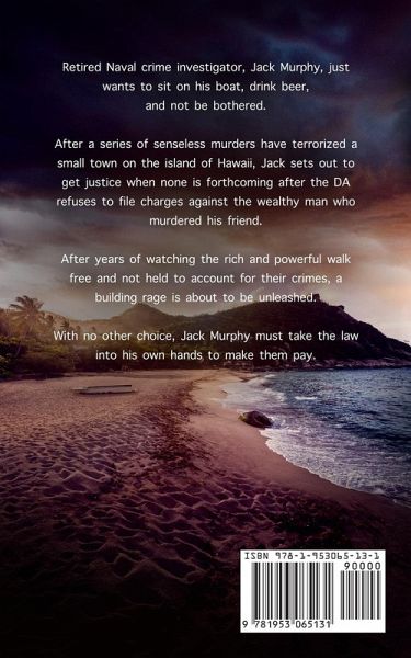 Retired Naval crime investigator, Jack Murphy, just wants to sit on his boat, drink beer, and not be bothered. After a series of senseless murders have terrorized a small town on the island of Hawaii, Jack sets out to get justice when none is forthcoming after the DA refuses to file charges against the wealthy man who murdered his friend. After years of watching the rich and powerful walk free and not held to account for their crimes, a building rage is about to be unleashed. With no other choice, Jack Murphy must take the law into his own hands to make them pay.
