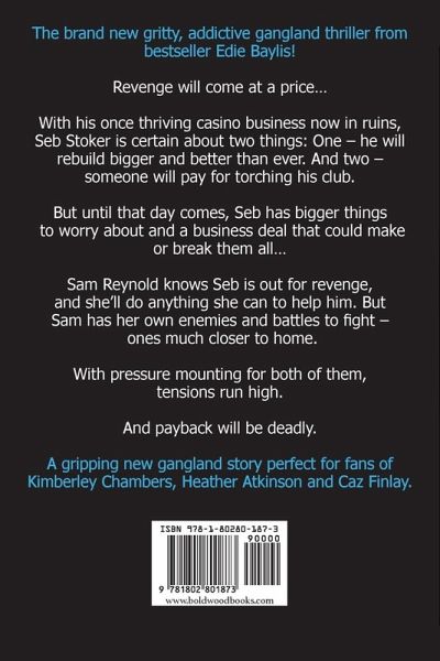 The brand new gritty, addictive gangland thriller from bestseller Edie Baylis! Revenge will come at a price... With his once thriving casino business now in ruins, Seb Stoker is certain about two things: One - he will rebuild bigger and better than ever. And two - someone will pay for torching his club. But until that day comes, Seb has bigger things to worry about and a business deal that could make or break them all... Sam Reynold knows Seb is out for revenge, and she'll do anything she can to help him. But Sam has her own enemies and battles to fight - ones much closer to home. With pressure mounting for both of them, tensions run high. And payback will be deadly. A gripping new gangland story perfect for fans of Kimberley Chambers, Heather Atkinson and Caz Finlay. What people are saying about Edie Baylis! 'From start to finish, fast paced and gripping. Gangland fiction at its best! Bestselling author Kerry Kaya. 'Shocking and thrilling at the same time. It will take your breath away!' Bestselling author Gillian Godden. 'Edie Baylis has produced another fantastic gangland read. I loved the characters and was gripped from the first page. A massive 5 stars!' Bestselling author Caz Finlay.