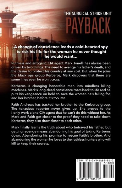 A change of conscience leads a cold-hearted spy to risk his life for the woman he never thought he would want... Ruthless and arrogant, CIA agent Mark Tonelli has always been driven by two things. The need to avenge his father's death, and the desire to protect his country at any cost. But when he joins the black ops group Kerberos, Mark discovers that there are some lines even he won't cross. Kerberos is changing honorable men into mindless killing machines. Mark's long-dead conscience roars back to life and he puts his vengeance on hold to save the woman he's falling for, and her brother, before it's too late. Faith Andrews has tracked her brother to the Kerberos group. The tenacious reporter never gives up. She proves to the I-only-work-alone CIA agent that he can't do this without her. As Mark and Faith get closer to the proof they need to take down Kerberos, they also draw closer to each other. Mark finally learns the truth about who betrayed his father, but getting revenge means abandoning his goal of taking Kerberos down. Abandoning his promise to rescue Faith's brother. And abandoning the woman he loves to the ruthless hunters who will kill to keep their secrets. If you like edge-of-your-seat action, shadowy government agencies committing terrible crimes, and characters forced to confront the darkness within themselves, then you'll love the fourth book in Vanessa Kier's action-packed SSU romantic thriller series. Get Payback today to begin the adventure!