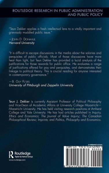In almost every liberal democratic society, an issue that is a topic of constant and passionate public discussion is how much that country's ministers, legislators, senior civil servants, and senior judges should be paid. Paying Our High Public Officials examines the political discourse concerning this question in 17 liberal democracies. Based on many hundreds of parliamentary debates, newspaper articles, speeches, as well as reports by think tanks and high commissions of state, the book identifies seven central arguments that occur in all these societies, translates them into the language of analytical philosophy, and then rigorously evaluates them. This approach contributes to a better understanding of this controversy and may result in better-justified and more legitimate conclusions concerning which policy to adopt.