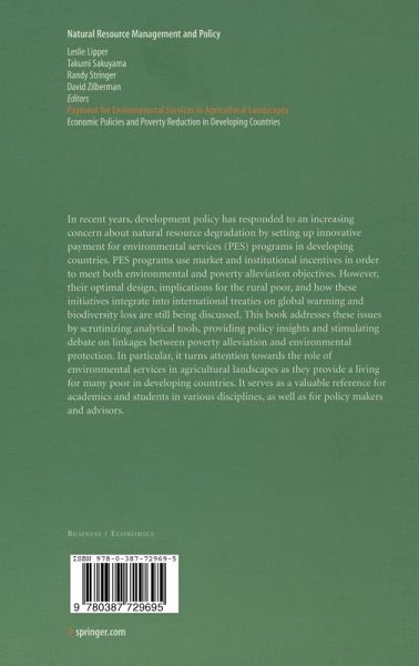 In recent years, development policy has responded to an increasing concern about natural resource degradation by setting up innovative payment for environmental services (PES) programs in developing countries. PES programs use market and institutional incentives in order to meet both environmental and poverty alleviation objectives. However, their optimal design, implications for the rural poor, and how these initiatives integrate into international treaties on global warming and biodiversity loss are still being discussed. This book addresses these issues by scrutinizing analytical tools, providing policy insights and stimulating debate on linkages between poverty alleviation and environmental protection. In particular, it turns attention towards the role of environmental services in agricultural landscapes as they provide a living for many poor in developing countries. It serves as a valuable reference for academics and students in various disciplines, as well as for policymakers and advisors.