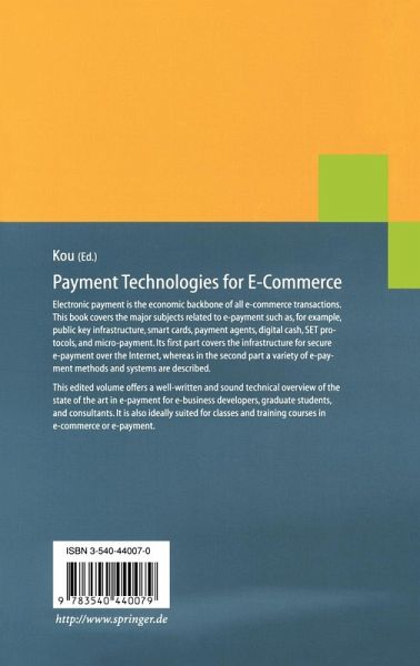 Electronic payment is the economic backbone of all e-commerce transactions. This book covers the major subjects related to e-payment such as, for example, public key infrastructure, smart cards, payment agents, digital cash, SET protocols, and micro-payment. Its first part covers the infrastructure for secure e-payment over the Internet, whereas in the second part a variety of e-payment methods and systems are described.