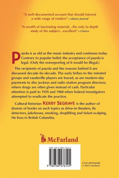 Payola is as old as the music industry and continues today. Contrary to popular belief, the acceptance of payola is legal. The recipients of payola and the reasons behind it are discussed decade-by-decade. The early bribes to the minstrel groups and vaudeville players are traced, as are modern-day payments to disc jockeys and radio station programme directors. Particular attention is paid to 1959 and 1960 when federal investigators attempted to eradicate the practice.