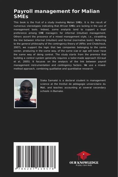 This book is the fruit of a study involving Malian SMEs. It is the result of numerous stereotypes indicating that African SMEs are lacking in the use of management tools. Indeed, some analysts tend to support a loyal preference among SME managers for informal (intuitive) management. Others assert the presence of a mixed management style, i.e., straddling the line between informal (intuition) and formal (normative tools). Referring to the general philosophy of the contingency theory of (Affès and Chabchoub, 2007), we support the logic that two companies belonging to the same sector, producing in the same way, of the same size or age will never have the same way of doing control. The study starts from the premise that building a control system generally requires a tailor-made approach (Giraud et al, 2005). It focuses on the analysis of the link between payroll management instrumentation and contingency factors. We use a mixed-method approach, combining qualitative and quantitative research.
