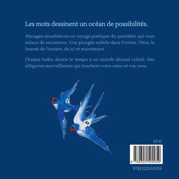 Les mots dessinent un océan de possibilités.Paysages sensibles est un voyage poétique du quotidien qui vous enlace de sensations. Une plongée subtile dans l'intime, l'être, la beauté de l'instant, du ici et maintenant.Chaque haïku donne le tempo à un monde abyssal coloré. Des allégories merveilleuses qui touchent votre coeur et vos yeux.