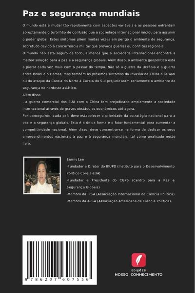 O mundo está a mudar tão rapidamente com aspectos variáveis e as pessoas enfrentam abruptamente o turbilhão de confusão que a sociedade internacional iniciou para assumir o poder global. Estes sintomas põem muitas vezes em perigo o ambiente de segurança, sobretudo devido à concorrência militar que provoca guerras ou conflitos regionais. O mundo não está seguro de todo, a menos que a sociedade internacional encontre a melhor solução para a paz e a segurança globais. Além disso, o ambiente geopolítico está a piorar cada vez mais com o passar do tempo. Não só a guerra da Ucrânia e a guerra entre Israel e o Hamas, mas também os próximos sintomas da invasão da China a Taiwan ou do ataque da Coreia do Norte à Coreia do Sul prejudicaram seriamente o ambiente de segurança no nordeste asiático. Além disso , a guerra comercial dos EUA com a China tem prejudicado amplamente a sociedade internacional através de graves obstáculos económicos até agora. Por conseguinte, cada país deve estabelecer a prioridade da estratégia nacional para a paz e a segurança globais. Esta é a única forma e o fator fundamental para aumentar a competitividade nacional. Além disso, deve concentrar-se na forma de dedicar os seus empreendimentos nacionais à paz e à segurança mundiais, tal como analisado neste livro.