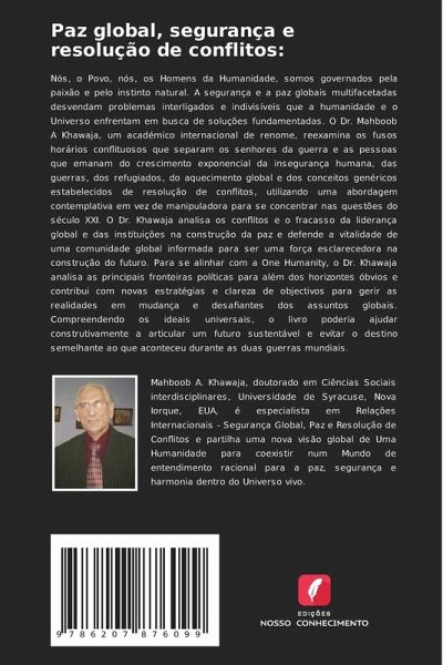 Nós, o Povo, nós, os Homens da Humanidade, somos governados pela paixão e pelo instinto natural. A segurança e a paz globais multifacetadas desvendam problemas interligados e indivisíveis que a humanidade e o Universo enfrentam em busca de soluções fundamentadas. O Dr. Mahboob A Khawaja, um académico internacional de renome, reexamina os fusos horários conflituosos que separam os senhores da guerra e as pessoas que emanam do crescimento exponencial da insegurança humana, das guerras, dos refugiados, do aquecimento global e dos conceitos genéricos estabelecidos de resolução de conflitos, utilizando uma abordagem contemplativa em vez de manipuladora para se concentrar nas questões do século XXI. O Dr. Khawaja analisa os conflitos e o fracasso da liderança global e das instituições na construção da paz e defende a vitalidade de uma comunidade global informada para ser uma força esclarecedora na construção do futuro. Para se alinhar com a One Humanity, o Dr. Khawaja analisa as principais fronteiras políticas para além dos horizontes óbvios e contribui com novas estratégias e clareza de objectivos para gerir as realidades em mudança e desafiantes dos assuntos globais. Compreendendo os ideais universais, o livro poderia ajudar construtivamente a articular um futuro sustentável e evitar o destino semelhante ao que aconteceu durante as duas guerras mundiais.