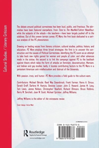 PC Wars: Politics and Theory in the Academy addresses the very issue of political correctness and the current skirmishes in the culture wars. It includes statements from many of our leading contemporary public intellectuals, including Joan Wallach Scott, Michael Bérubé, Bruce Robbins, Henry Giroux, and Gerald Graff. The collection marks a watershed in the debate about pc in that it presents serious considerations and analyses of the factors, causes, and consequences of the culture wars. Carefully examining the construction of pc, PC Wars analyses political correctness by focusing on the mass media, class politics, and the ideology of managerial democracy. It places the disputes around pc in the context of contemporary developments in critical and cultural theory and the current backlash against theory, manifested in the recent attacks on Marxism, feminism and deconstruction. The book also scrutinizes the undercurrents of anti-intellectualism and anti-professionalism which have tended to create a fertile ground for the pc hysteria. Offering much more than slogans and slinging arrows, PC Wars provides a spirited and critical look at the reaction, ideology, and political forces that have coalesced around the term. Contributors: Michael Bérubé, Reed Way Dasenbrock, Frank Farmer, Henry Giroux, Gerald Graff, Darlene Hantzis and Devoney Looser, John S. Howard and James M. Lang, Tom Lewis, James Neilson, Christopher Newfield, Richard Ohmann, Burce Robbins, Barry Sarchett, Joan W. Scott, Michael Sprinker, Jeffrey Williams