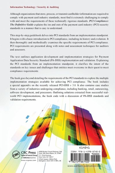 This book explains the payment card industry (PCI) security standards required for organizations storing, processing, or transmitting credit card holder information. This step-by-step guide outlines application development and implementation strategies for Payment Application Data Security Standard (PA-DSS) implementation and validation. It includes case studies and examples from a variety of industries, including banking, retail, outsourcing, software development, and processors. Focused on audit and assessment strategies, the book articulates specific compliance issues and covers the recently released PCI-DSS v 3.0.…mehr