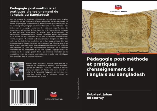 Dans cet ouvrage, les pratiques pédagogiques post-méthode, telles qu'elles sont décrites par les professeurs d'anglais bangladais, ont été examinées. Le modèle de pédagogie post-méthode de Kumaravadivelu présente le point de vue selon lequel la pédagogie conventionnelle basée sur les méthodes a des limites, car la pédagogie basée sur les méthodes sape la base de connaissances périphérique de l'enseignement et de l'apprentissage en raison de son approche descendante, et appelle donc à l'actualisation de méthodologies d'enseignement de l'anglais spécifiques au lieu. Les données de ce travail ont été collectées par le biais d'entretiens semi-structurés ouverts, auxquels ont participé quatorze professeurs d'anglais de différentes écoles du Bangladesh. Les conclusions de ce livre suggèrent que, bien que l'enseignement en classe décrit par les enseignants participants caractérise divers aspects des applications de la pédagogie post-méthode, ces pratiques d'enseignement ne sont pas nécessairement indicatives de la véritable compréhension des enseignants (ou de leur capacité à appliquer) tous les concepts de la pédagogie post-méthode. La principale implication est la nécessité de revoir les concepts organisationnels du cadre macrostratégique pour l'actualiser dans le contexte bangladais.