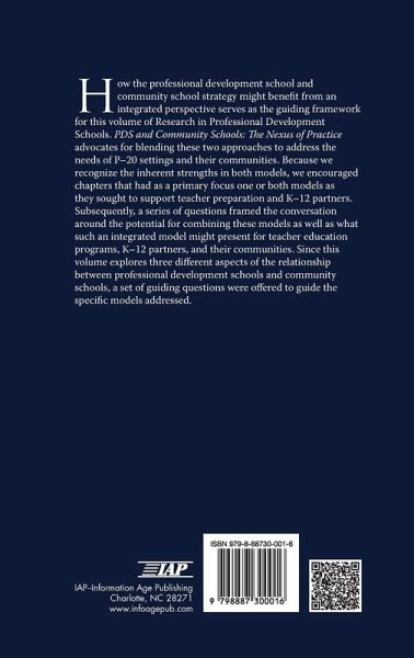 How the Professional Development School and Community School strategy might benefit from an integrated perspective serves as the guiding framework for this volume of Research in Professional Development Schools. This book advocates for blending these two approaches to address the needs of P-20 settings and their communities. Because we recognize the inherent strengths in both models, we encouraged chapters that had as a primary focus one or both models as they sought to support teacher preparation and K-12 partners. Subsequently, a series of questions framed the conversation around the potential for combining these models as well as what such an integrated model might present for teacher education programs, K-12 partners, and their communities. Since this volume explores three different aspects of the relationship between Professional Development Schools and Community Schools, a set of guiding questions were offered to guide the specific models addressed.