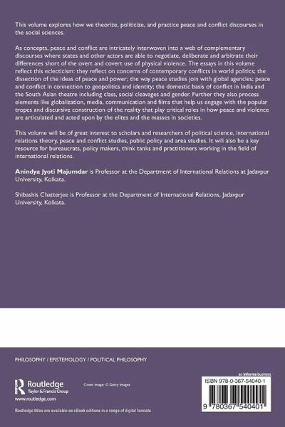 As concepts, peace and conflict are intricately interwoven into a web of complementary discourses where states and other actors are able to negotiate, deliberate and arbitrate their differences short of the overt and covert use of physical violence. The essays in this volume reflect this eclecticism: they reflect on concerns of contemporary conflicts in world politics; the dissection of the ideas of peace and power; the way peace studies join with global agencies; peace and conflict in connection to geopolitics and identity; the domestic basis of conflict in India and the South Asian theatre including class, social cleavages and gender. Further they also process elements like globalization, media, communication and films that help us engage with the popular tropes and discursive construction of the reality that play critical roles in how peace and violence are articulated and acted upon by the elites and the masses in societies.