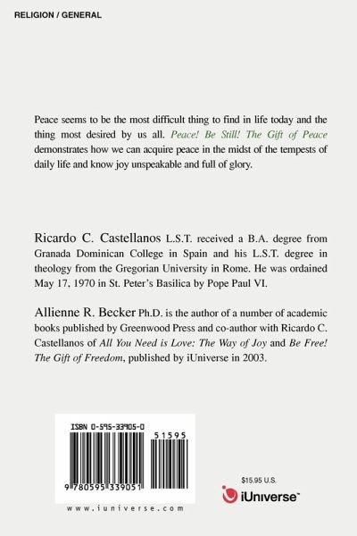 Peace seems to be the most difficult thing to find in life today and the thing most desired by us all. Peace! Be Still! The Gift of Peace demonstrates how we can acquire peace in the midst of the tempests of daily life and know joy unspeakable and full of glory.
