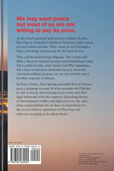 At the closely guarded and secretive military facility, Pine Gap in Australia's Northern Territory, police arrest six nonviolent activists. Their crime- to step through a fence, lamenting and praying for the dead of war. They call themselves Peace Pilgrims. The Crown calls them a threat to national security and demands gaol time. Their political trials, under harsh Cold War legislation, tell a story of obsessive Australian secrecy about the American military presence on our soil and the state's hardline response to dissent. In Peace Crimes, Alice Springs journalist Kieran Finnane gives a gripping account of what prompts the Pilgrims to risk so much, interweaving local events and their legal aftermath with this century's disturbing themes of international conflict and high-tech war. She asks, what responsibilities do we have as Australians for the covert military operations of Pine Gap and what are we going to do about them? --