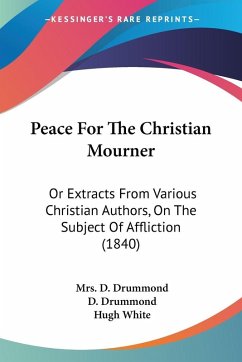 Peace For The Christian Mourner: Or Extracts From Various Christian Authors, On The Subject Of Affliction (1840) is a book compiled by Mrs. D. Drummond. The book is a collection of writings from various Christian authors on the topic of affliction and how to find peace in times of mourning. The book is intended to offer comfort and solace to those who are grieving and struggling with the pain of loss. The authors included in the book offer insights, guidance, and encouragement to those who are mourning, drawing on their own experiences and the teachings of the Bible. The book is written in a clear and accessible style, making it easy for readers to find comfort and inspiration in its pages. Overall, Peace For The Christian Mourner is a valuable resource for anyone who is dealing with the pain of loss and seeking peace and comfort in their faith.And An Original Paper On Christian Consolation.This scarce antiquarian book is a facsimile reprint of the old original and may contain some imperfections such as library marks and notations. Because we believe this work is culturally important, we have made it available as part of our commitment for protecting, preserving, and promoting the world's literature in affordable, high quality, modern editions, that are true to their original work.