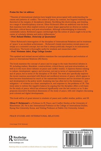 'Oliver Richmond's interrogation of the discipline of International Relations and its treatment of 'peace' is an excellent achievement....Richmond's timely intervention reveals peace not simply as a contested concept, but one that is always politically charged in its instrumental invocations. The book is thoroughly useful for students and researchers alike.'--Prof. Vivienne Jabri, Kings College London, UK