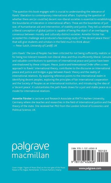 How can fair cooperation and a stable peace be reached in the international realm? Peace, Justice and International Order discusses this question in the light of John Rawls' The Law of Peoples, offers a new approach to Rawls' international theory and contributes to the discourse on international peace and justice.